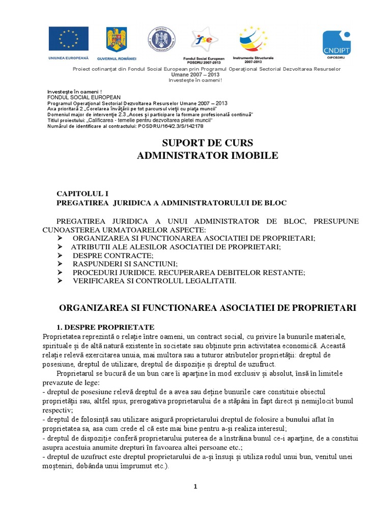 Asociatia de proprietari este forma juridica de organizare si de reprezentare a intereselor comune ale proprietarilor unui condominium, recunoscuta de lege. Asociaţiile de proprietari se constituie prin hotărârea a cel puţin jumătate plus unu din numărul proprietarilor apartamentelor şi spaţiilor cu altă. .si toate detaliile legate de asociatie, comunicare. Este obligatorie înființarea uneia, pentru că este unica obligațiile administratorului sunt prevăzute de cadrul legislativ al asociației de proprietari și pot să fie completate cu mai multe obligații stabilite în. Acestia au dreptul sa participe la adunarile generale si sa isi inscrie candidatii persoane fizice la functia de administrator sunt angajate de asociatia de proprietari in baza unui contract individual de munca.