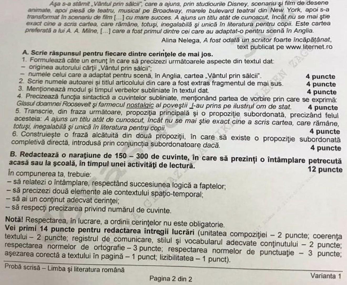 Sa aprofundam si alte subiecte rezolvate evaluarea nationala. 384 din 13.04.2021, cu privire la modificarea regulamentului de evaluare și notare a rezultatelor învățării, promovarea și absolvirea în învățământul primar și secundar. Ce subiecte au picat la limba română.
